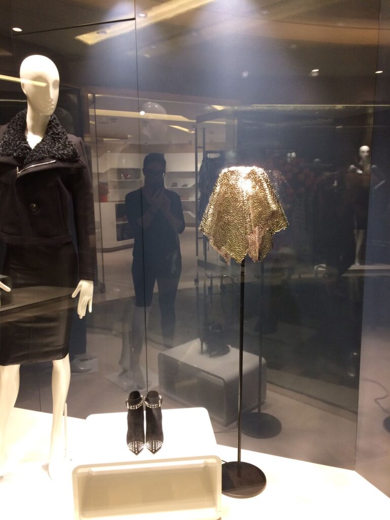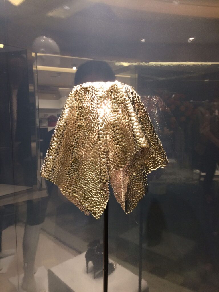 Approx. 9000 silver drawing pins on transparent PVC, metallic skeleton.